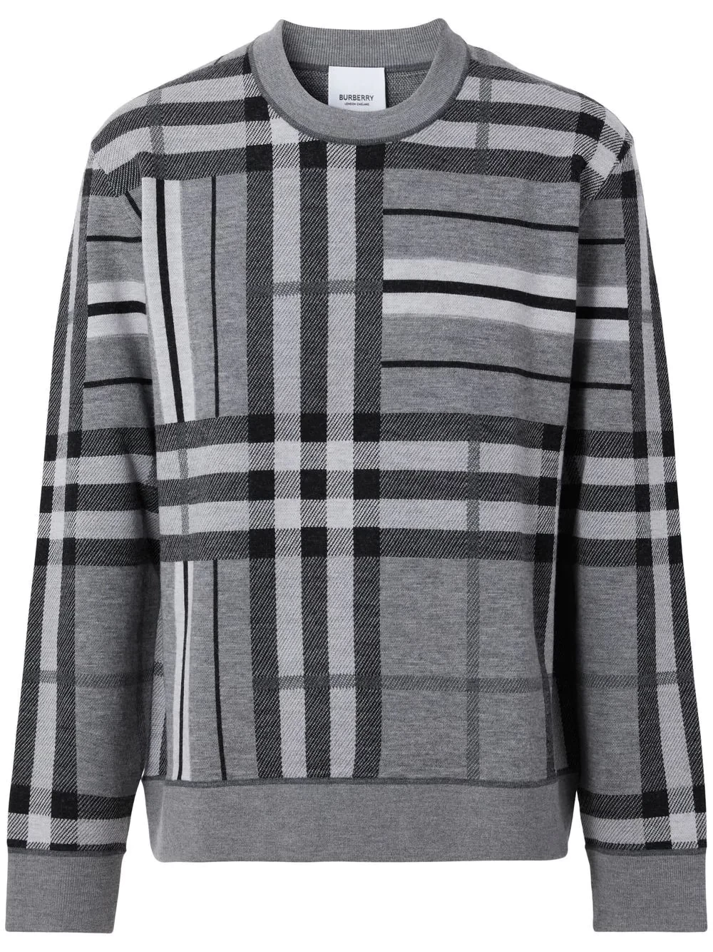 Spun from a wool construction, this jumper from Burberry is decorated with a check pattern throughout for a signature touch to a classic knit.