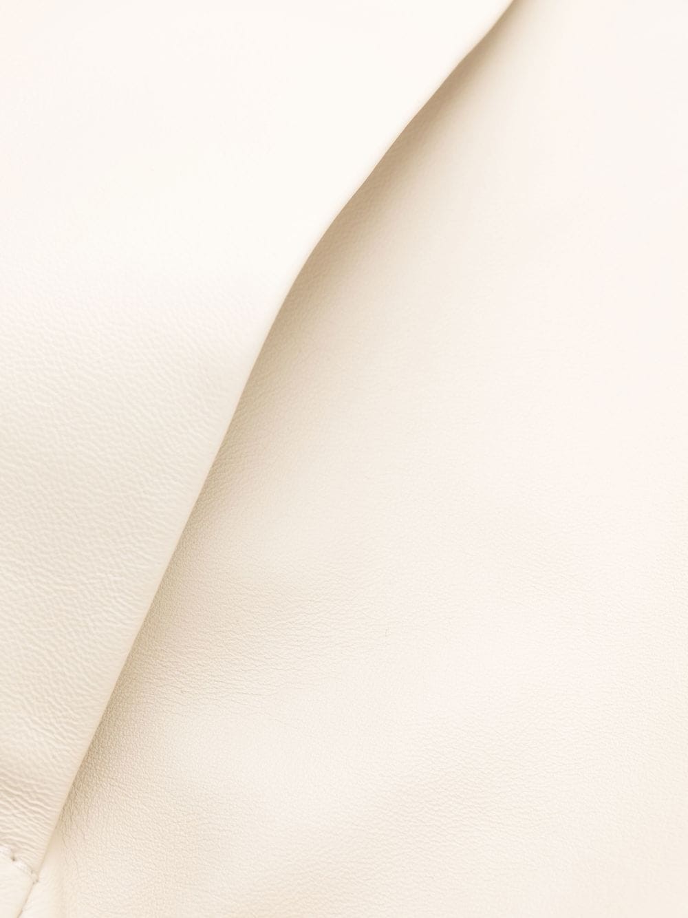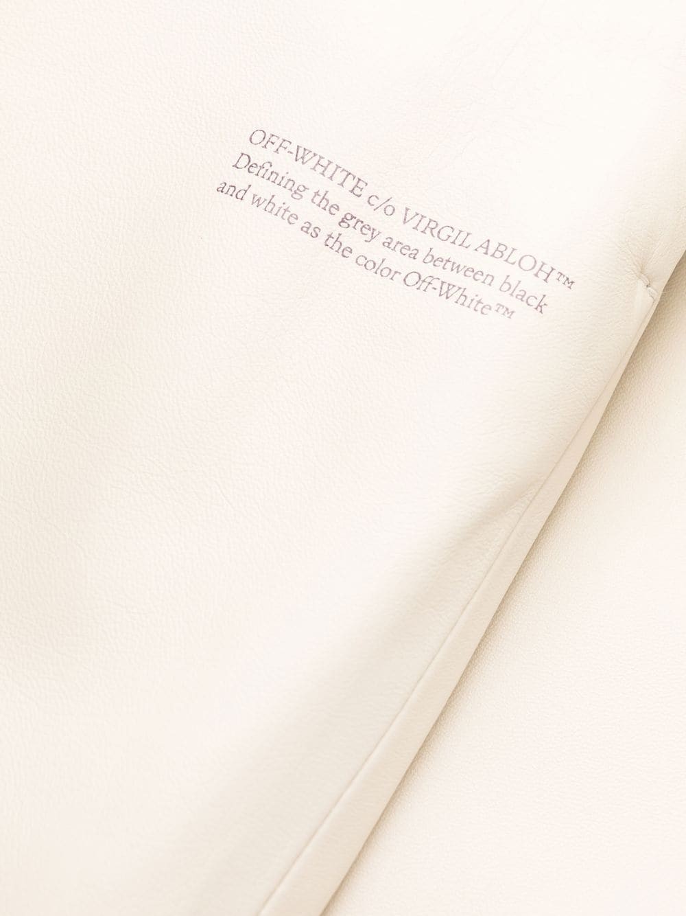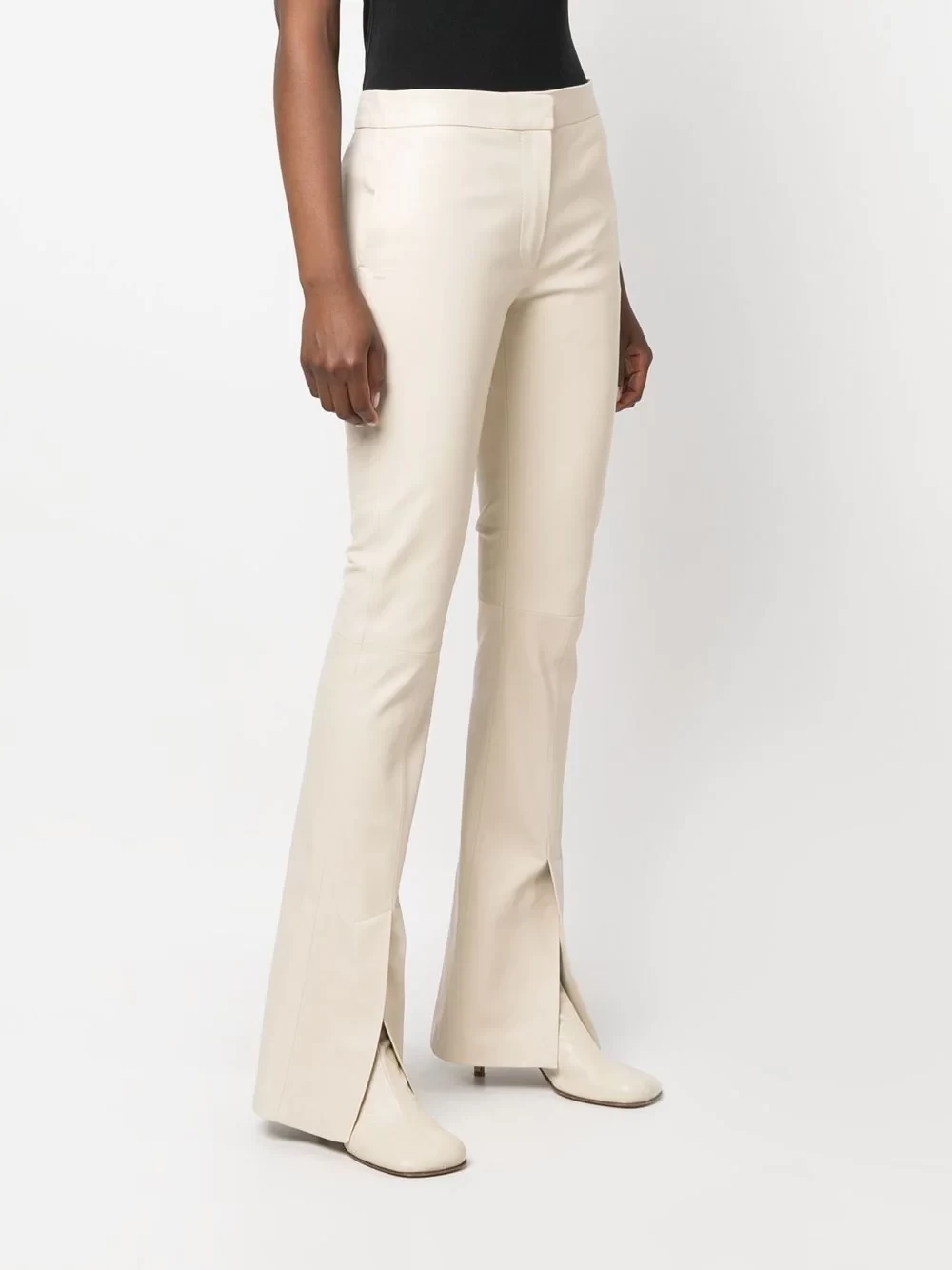 Corporate leather tailored trousers from OFF-WHITE featuring sand beige, leather, logo print at the leg, zip fly fastening, flared hem, slip pockets to the sides and two rear welt pockets.
