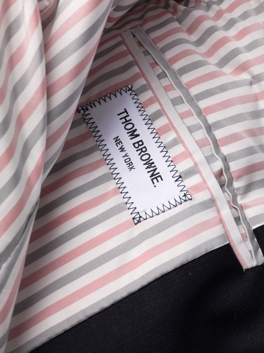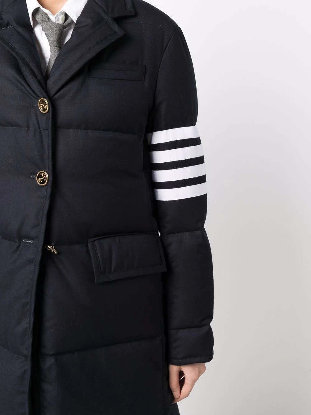 overcoat boasts an insulating down-feather filling. The practical design is given a classic feel thanks to a timeless navy-blue and white colourway.