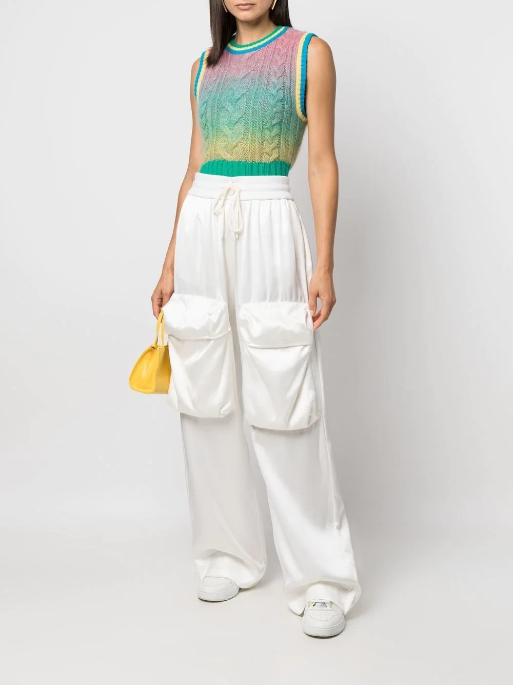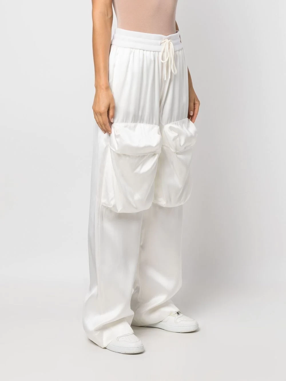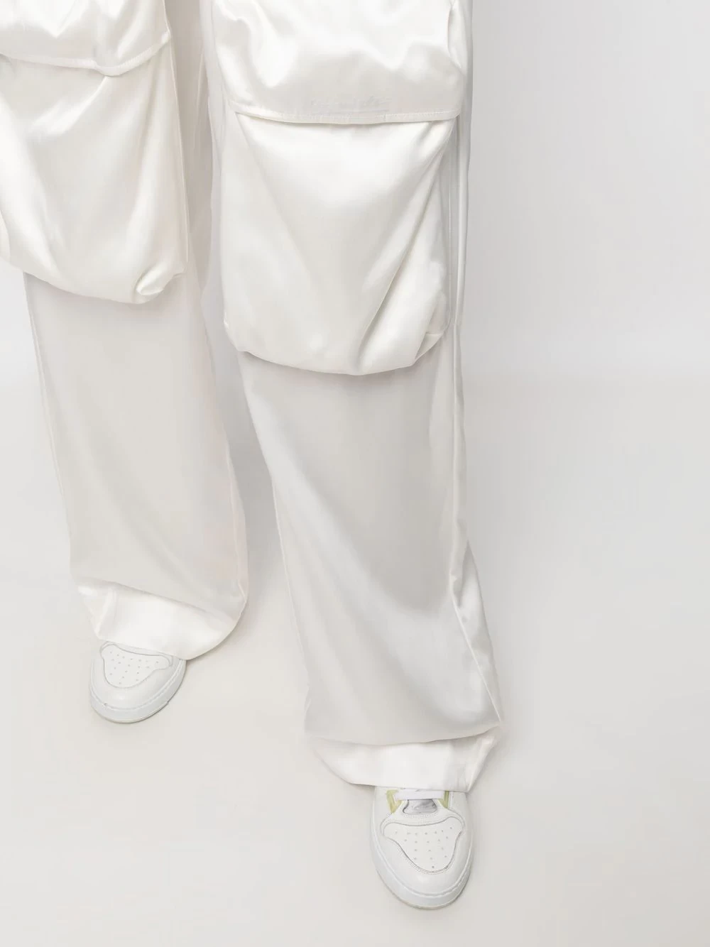 Off-White showcases utilitarian influences for AW22, whilst maintaining their futuristic design style. Showcasing the concept, these cargo trousers are presented as a wide-leg silhouette, whilst the exaggerated front pockets contribute to their modern look.