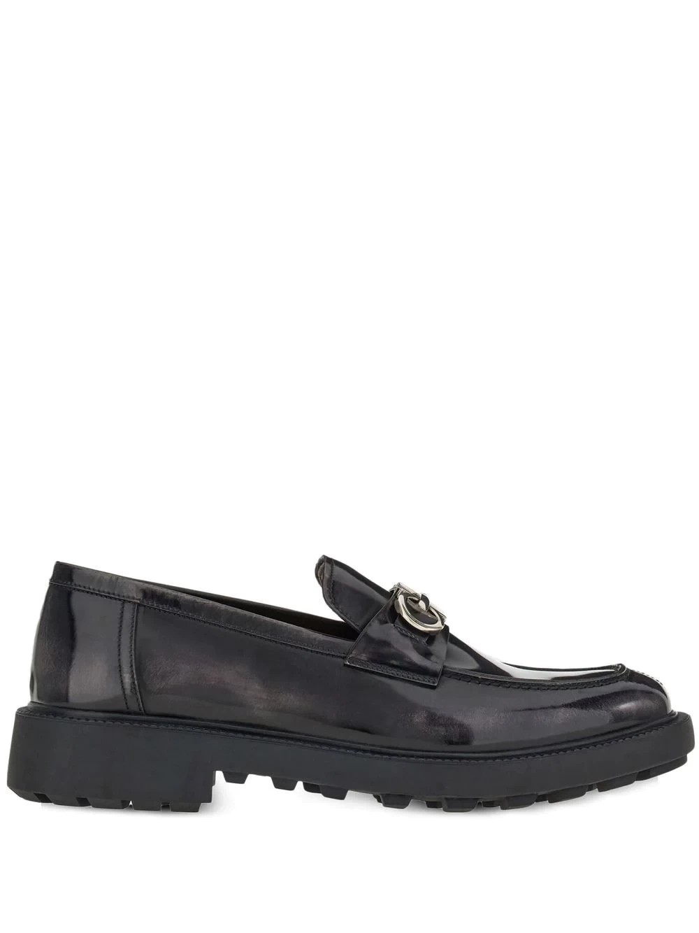 Gancini-plaque patent loafers