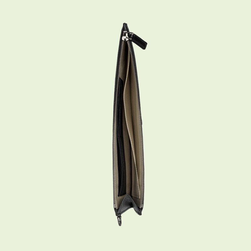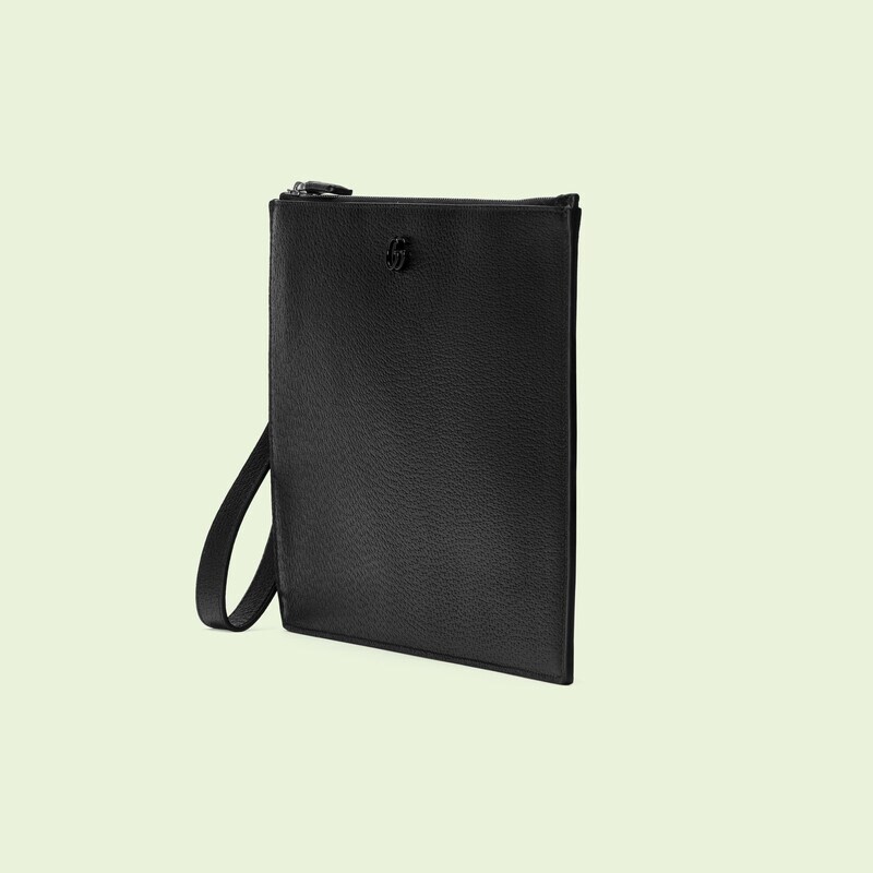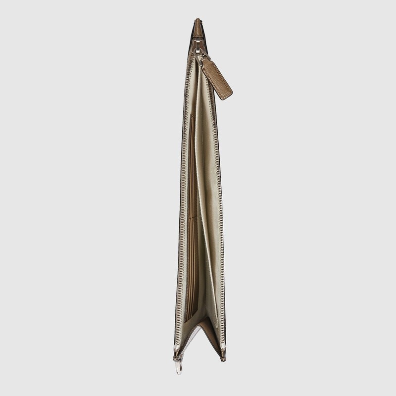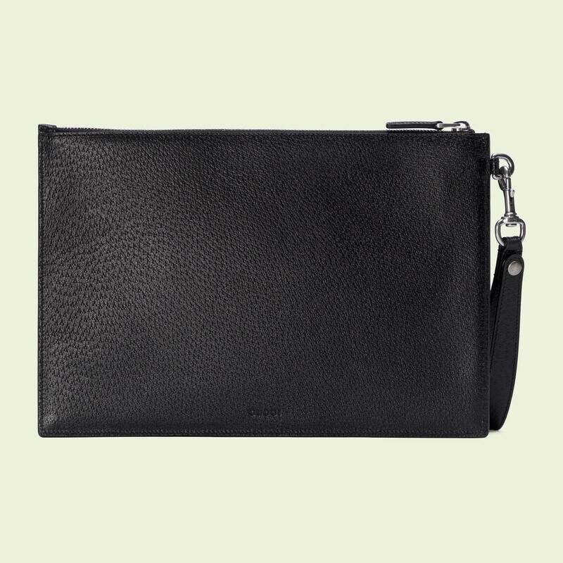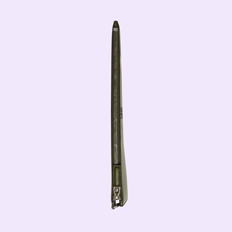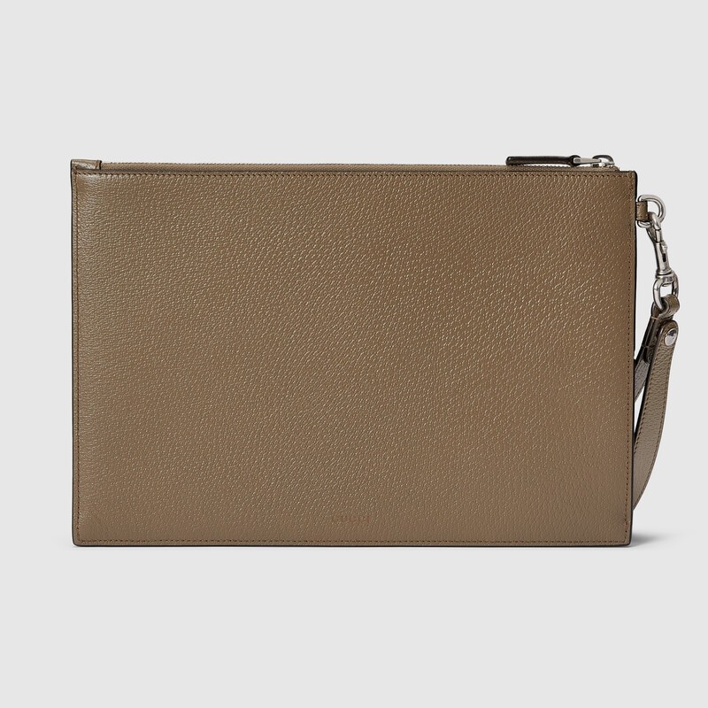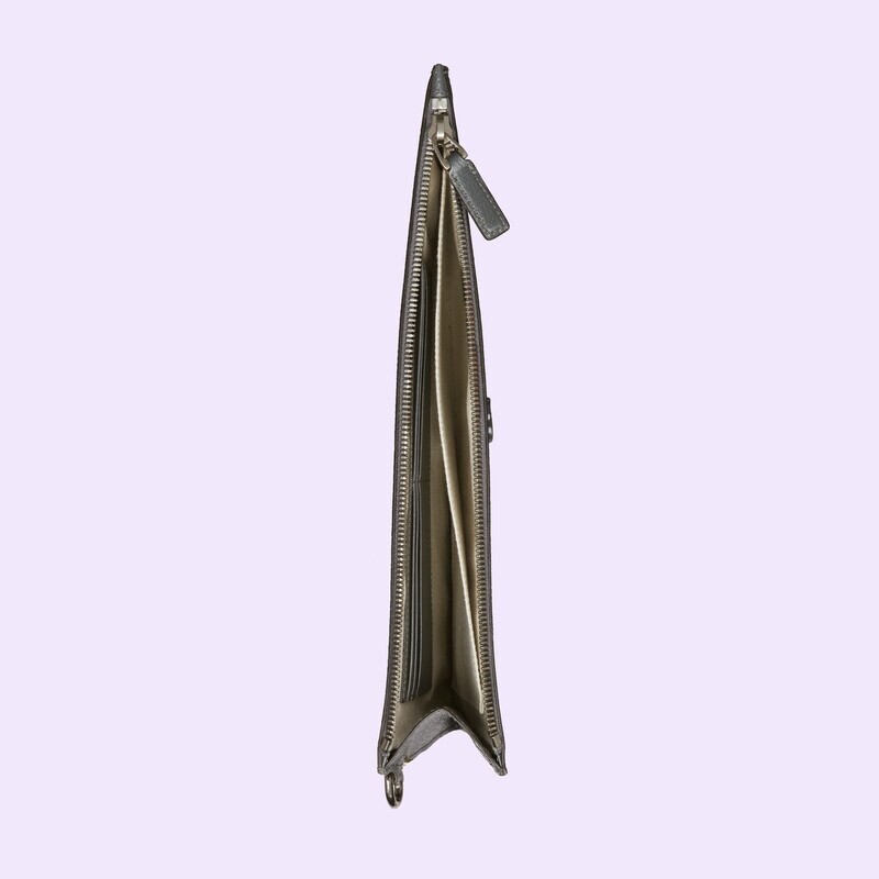 • Gucci continues to update its color palette and add more refined shades. In the new colour palette and combinations, the brand reinterprets the classic GG Marmont collection with a modern perspective. This clutch is crafted from forest-green leather and finished with branded accessories in palladium gold.