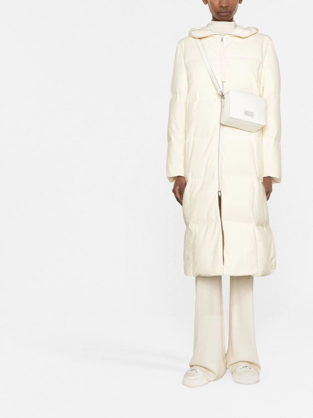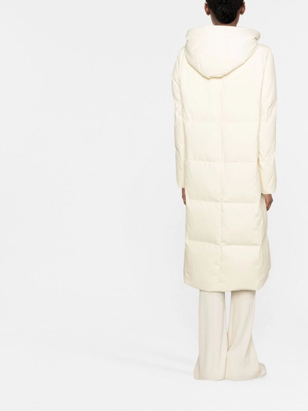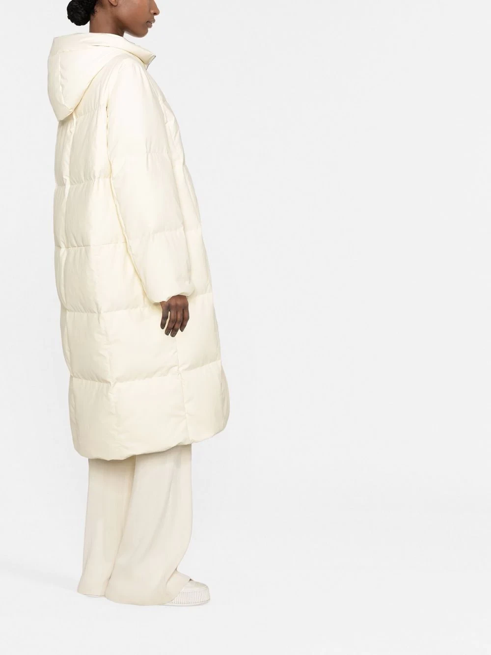 padded coat is designed to block out the cold. Filled with insulating goose down, this long-length style features a convenient large hood.