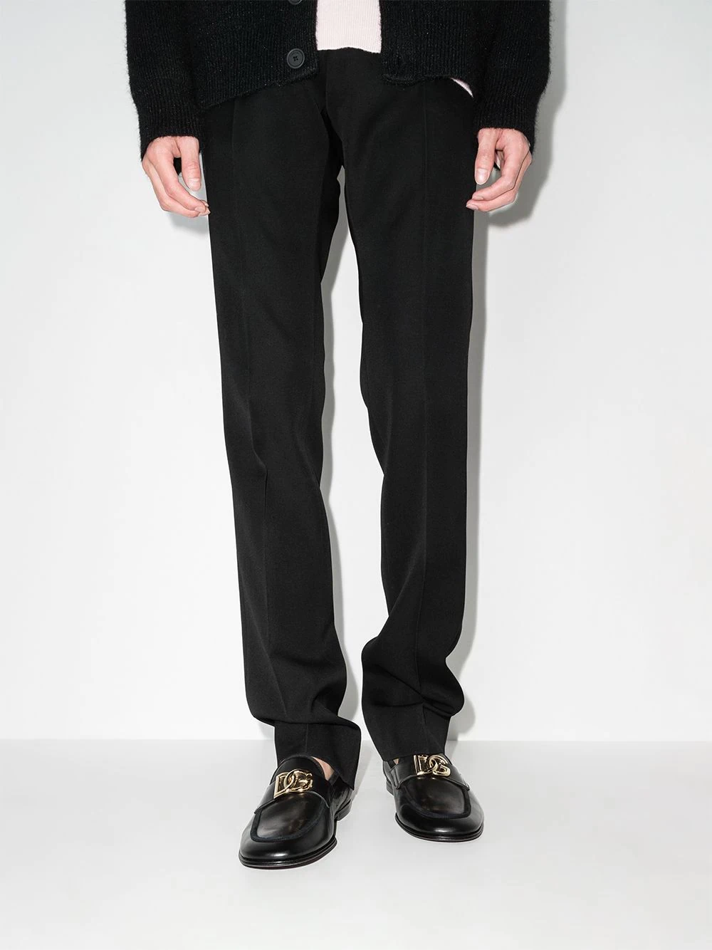 With a classic construction, these black loafers from Dolce & Gabbana show an exquisite and instantly recognisable detail: an interlocking DG plaque in gold-tone hardware.