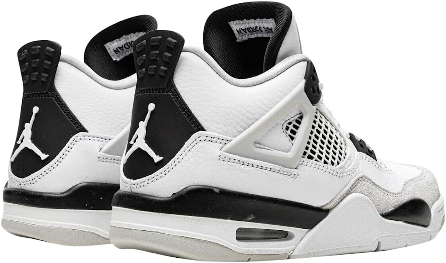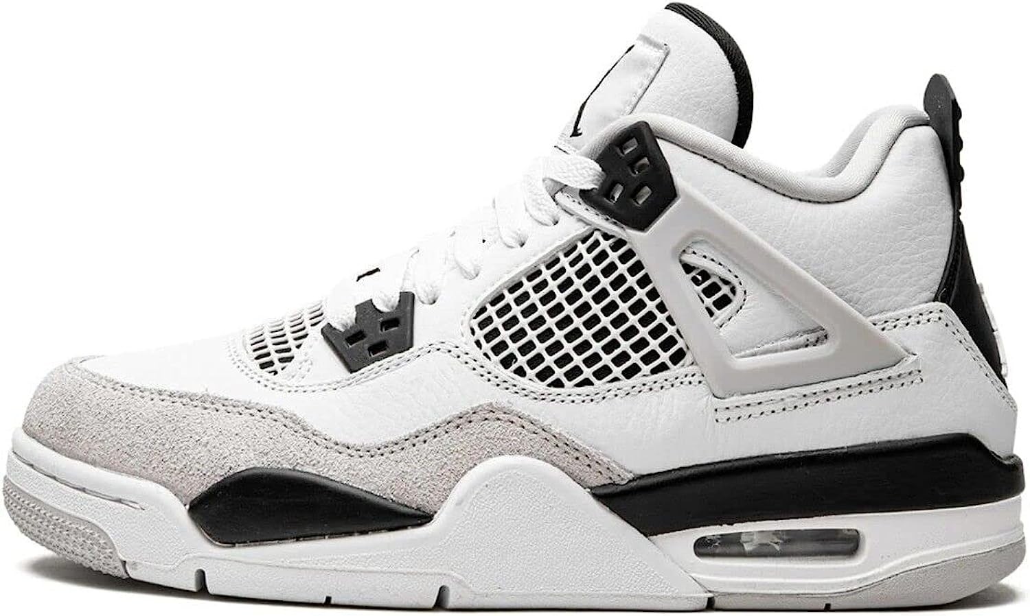 • The Jordan 4’s interpretation of the look features a dark grey synthetic nubuck upper with a light grey toe guard