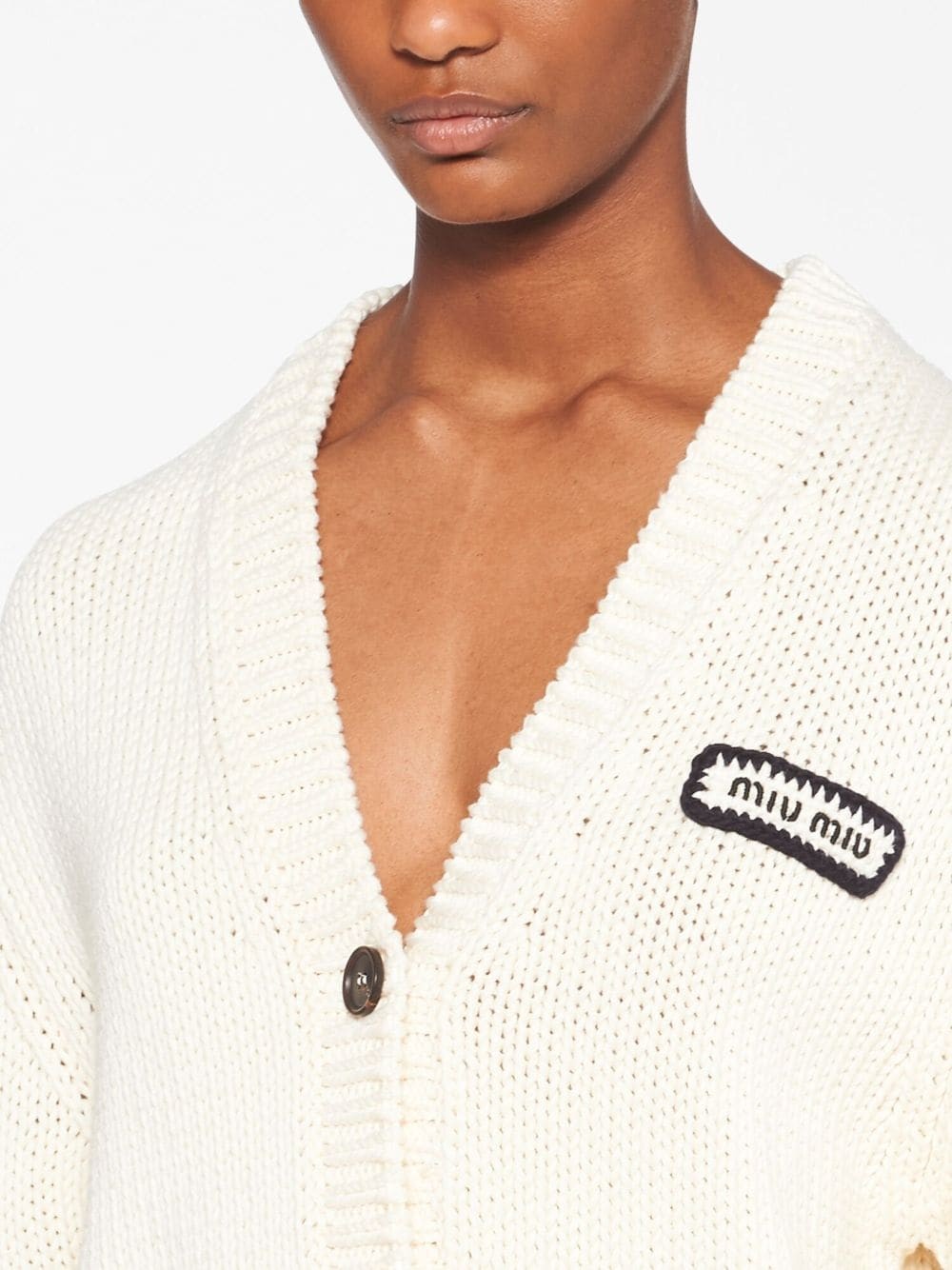 Cable knit cropped v neck cardigan - THOM BROWNE