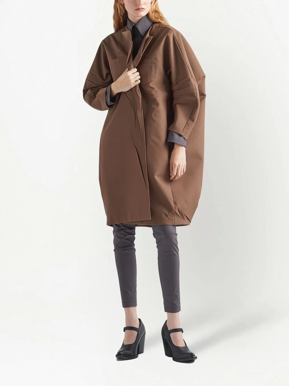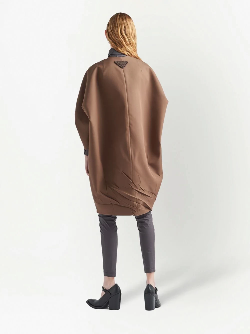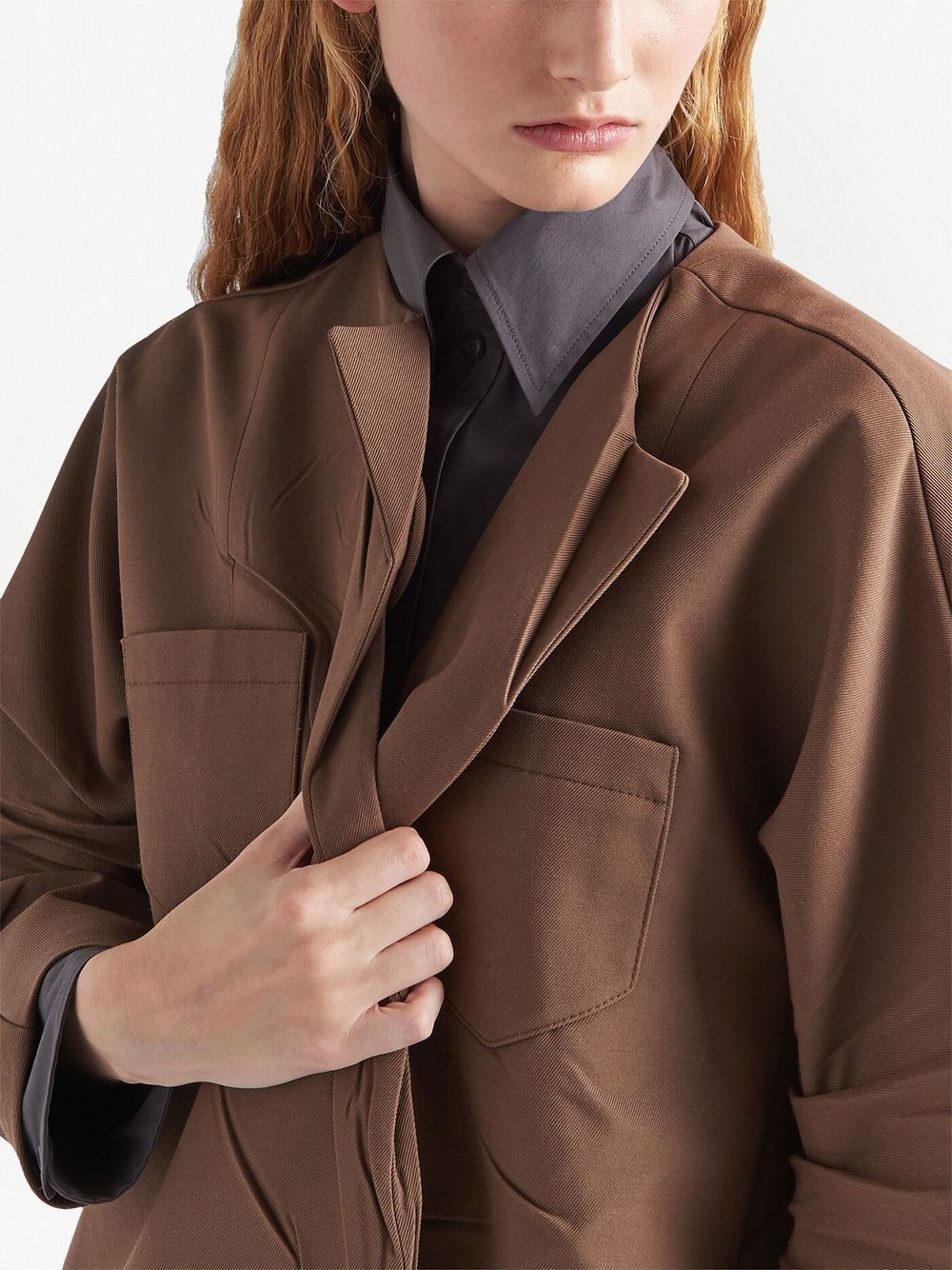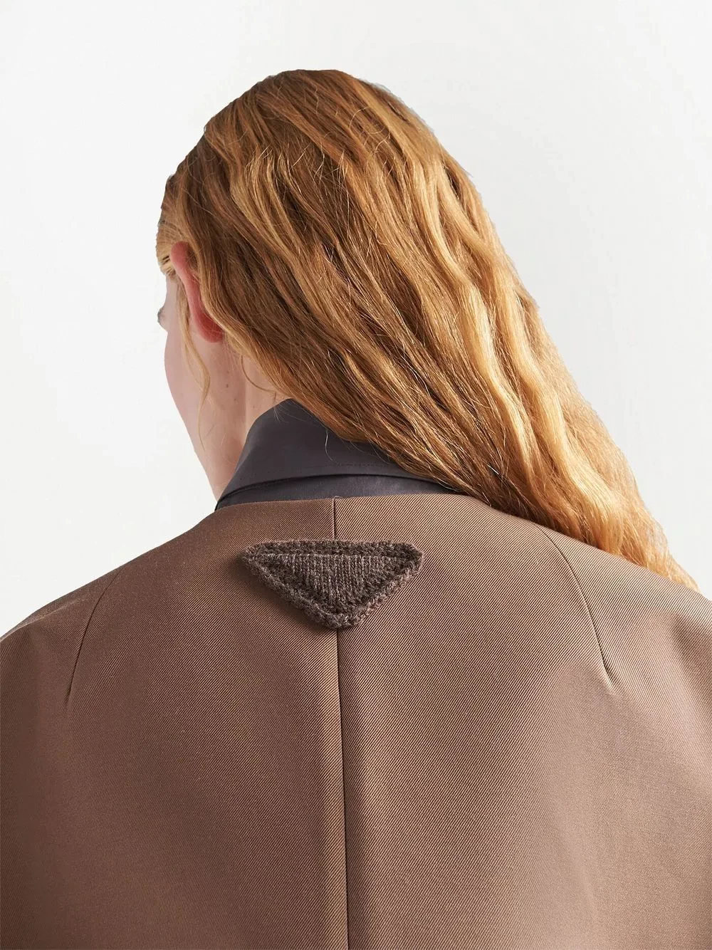 featuring camel brown, logo patch to the rear, concealed front button fastening, two chest patch pockets, long sleeves and wool.