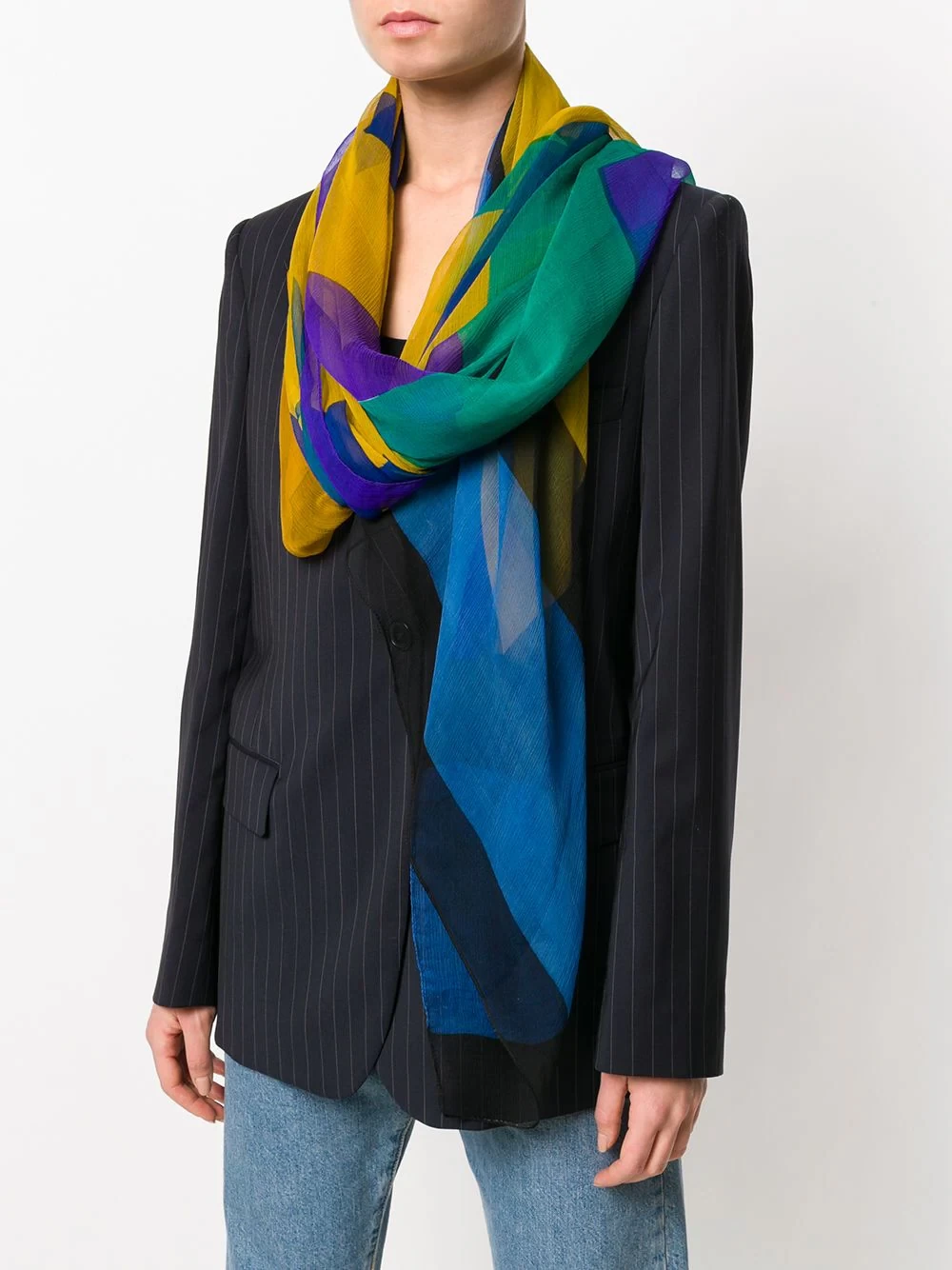 Multicolour silk graphic pattern shawl from Yves Saint Laurent Pre-Owned featuring finished edges. This item is unisex. Please be mindful that this piece has led a previous life, and may tell its story through minor imperfection. Purchasing this item continues its narrative, so you can be confident that you’re making a POSITIVELY CONSCIOUS choice for the planet.