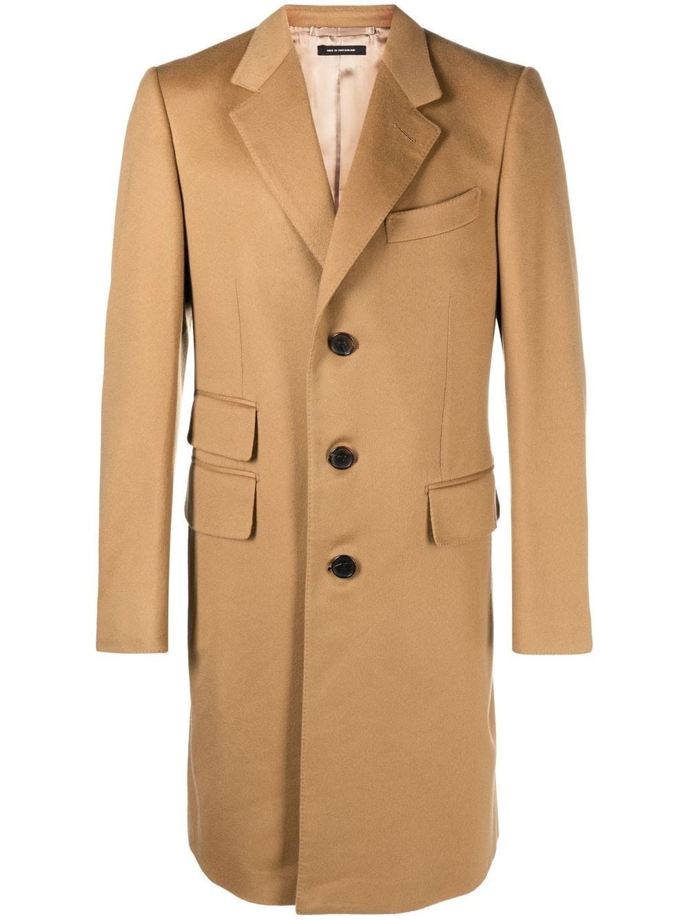 Tom Ford demonstrates the exquisite craftmanship that defines its designs with this single-breasted coat. Spun from sumptuous cashmere to a timeless camel brown hue, it is detailed with three front flap pockets for a subtle contemporary twist.