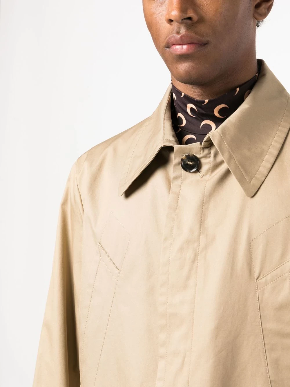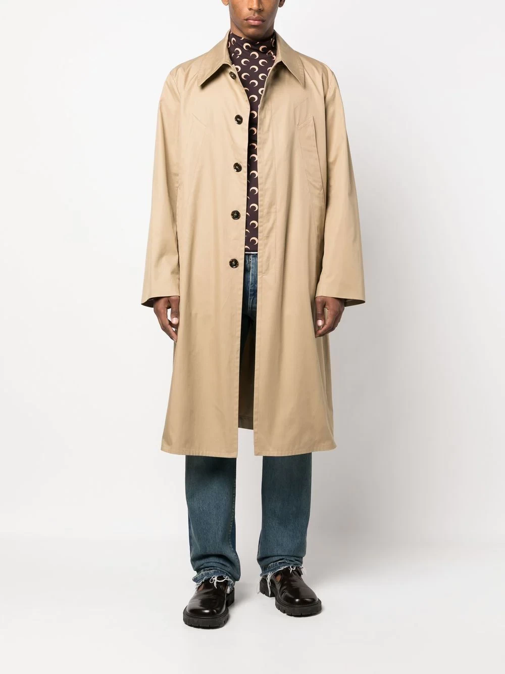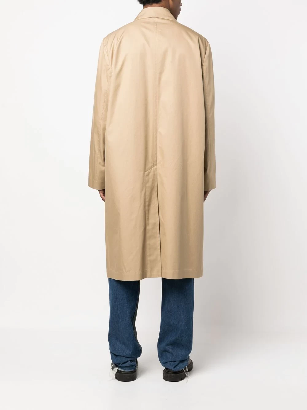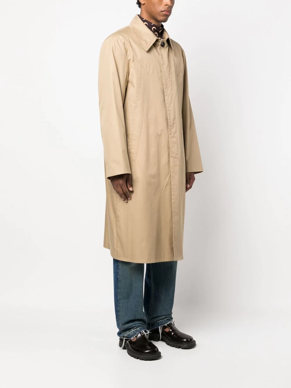 single-breasted trench coat from MM6 Maison Margiela featuring beige, cotton blend, classic collar, front button fastening, long sleeves and long length.