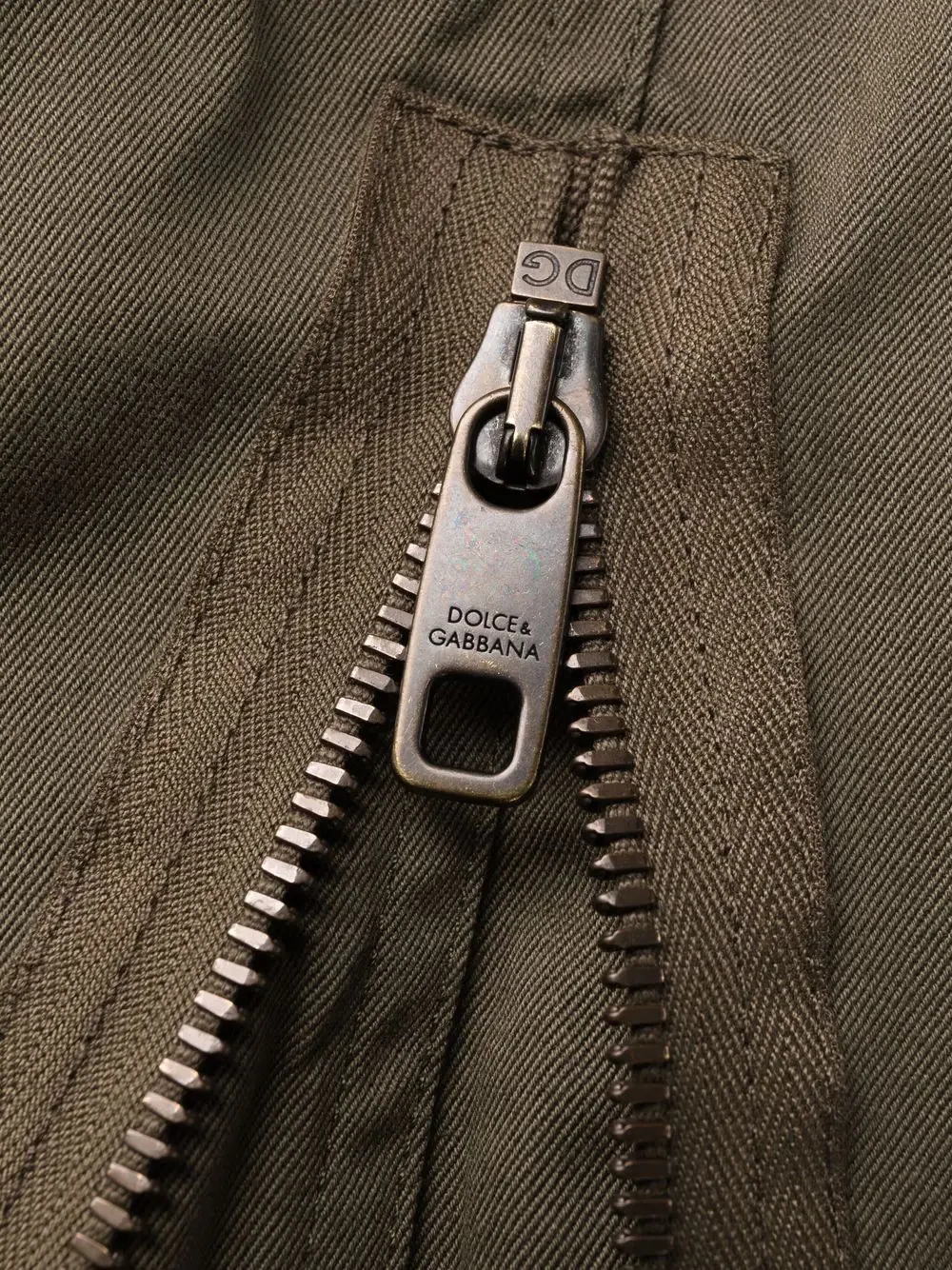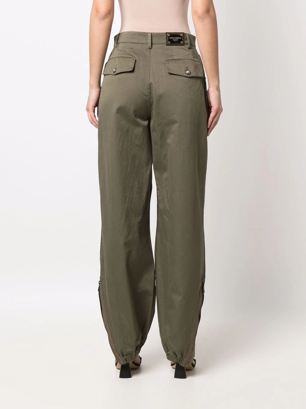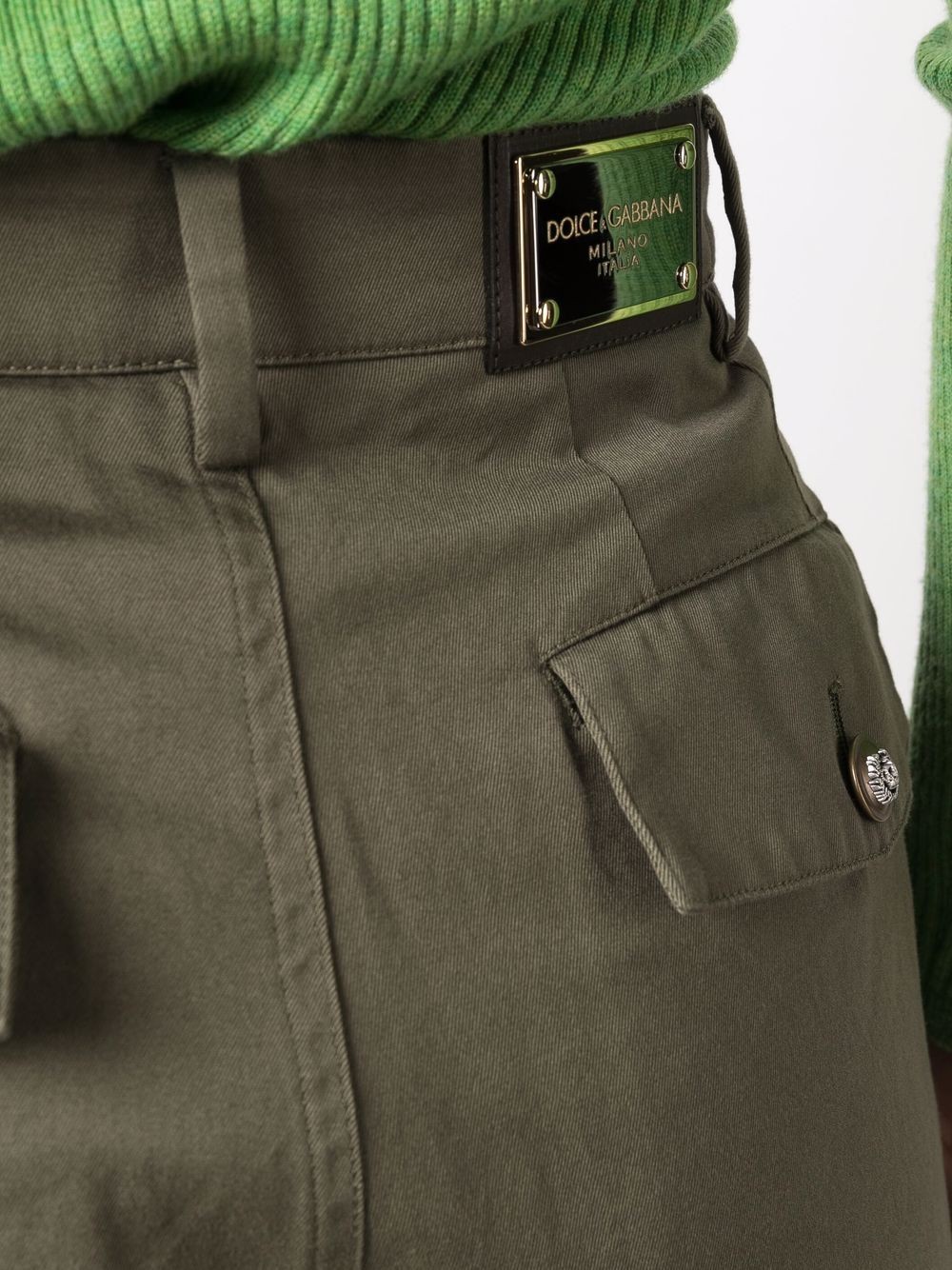 Sage-green cotton straight-leg cargo trousers from DOLCE & GABBANA featuring straight leg, front button fastening and two side flap pockets.