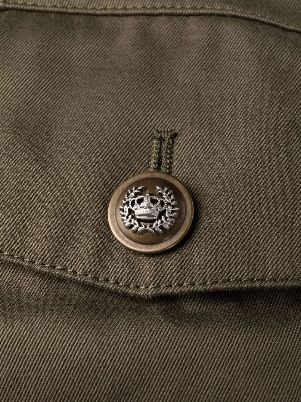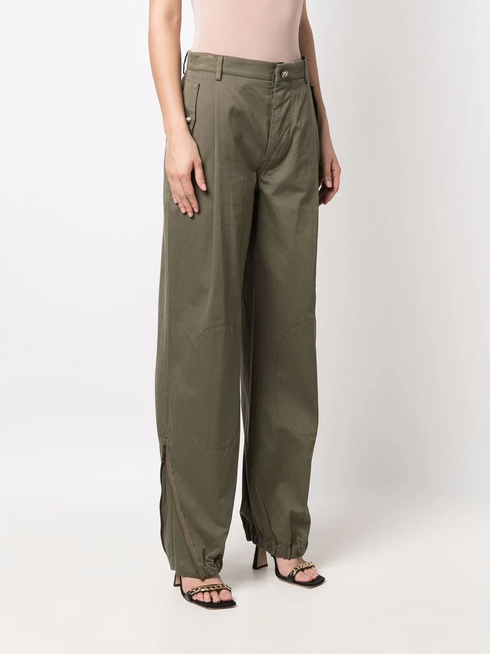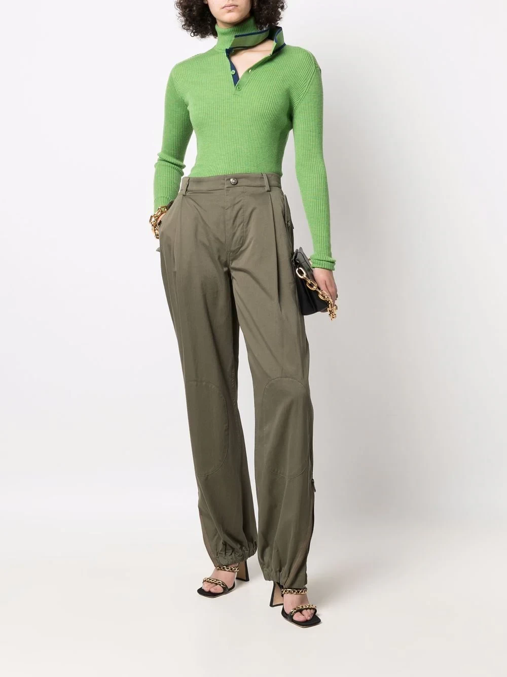Sage-green cotton straight-leg cargo trousers from DOLCE & GABBANA featuring straight leg, front button fastening and two side flap pockets.