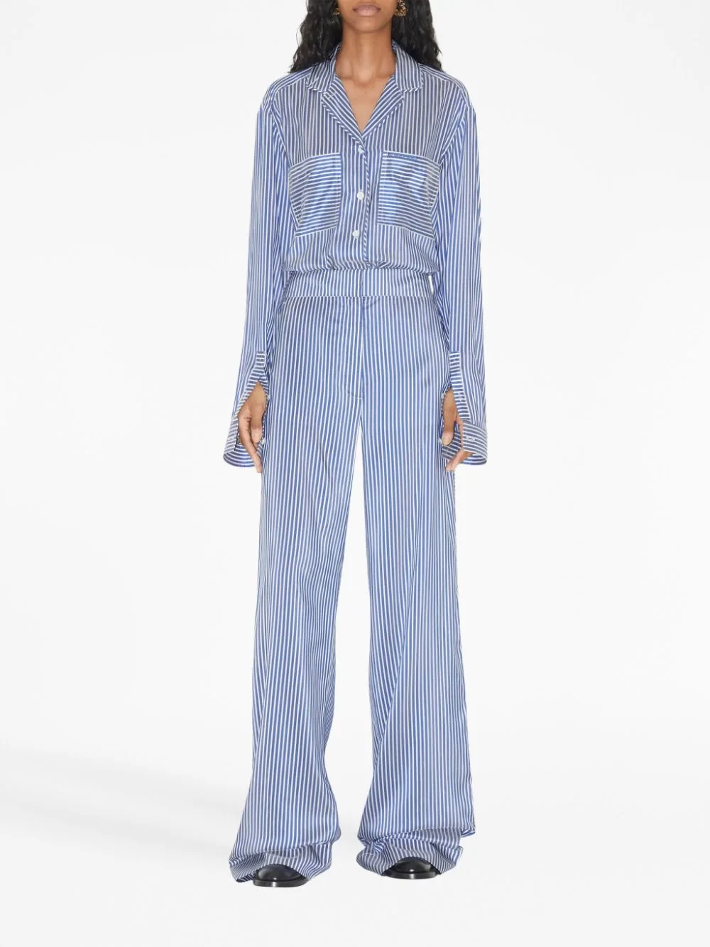 Striped silk wide-leg trousers