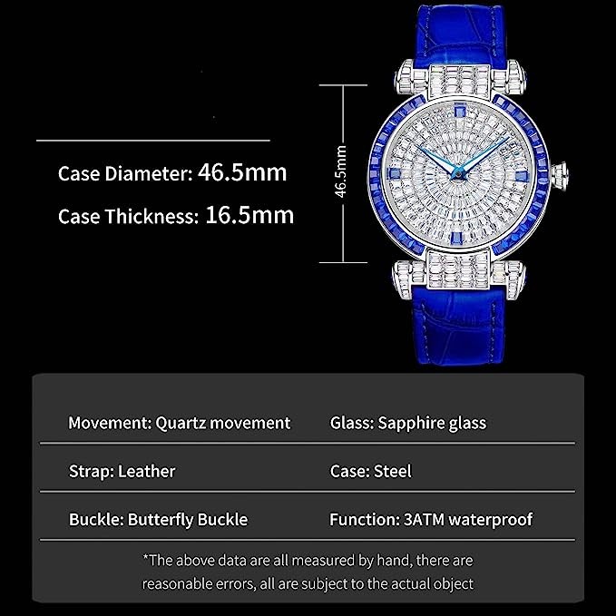 •   Classic Design - Tielbo diamond encrusted skeleton mechanical men's watch, oversized arch bridge type stainless steel case, more suitable for the hand. The case is set with 95 genuine square-cut white diamonds, while the dial is set with 330 square-cut white diamonds .The full diamond gypsophila disc design creates fashion and luxury. Show a very personal charm. Not only a tool of time, but also a noble work of art.