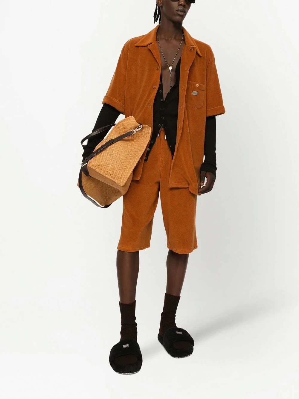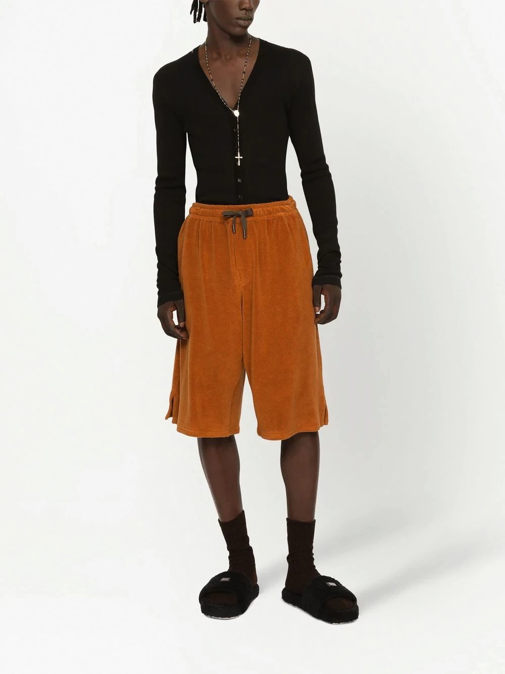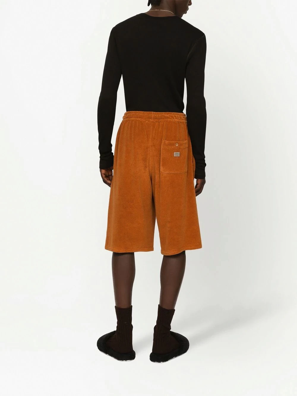 towelling-finish bermuda shorts from DOLCE & GABBANA featuring burnt orange, cotton, towelling finish, elasticated drawstring waistband, two side slit pockets, rear patch pocket and knee-length.