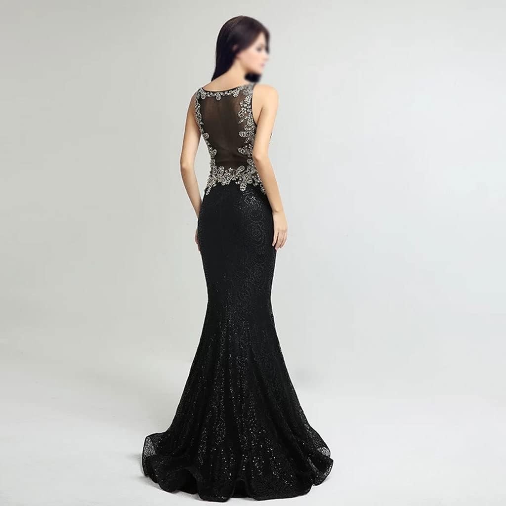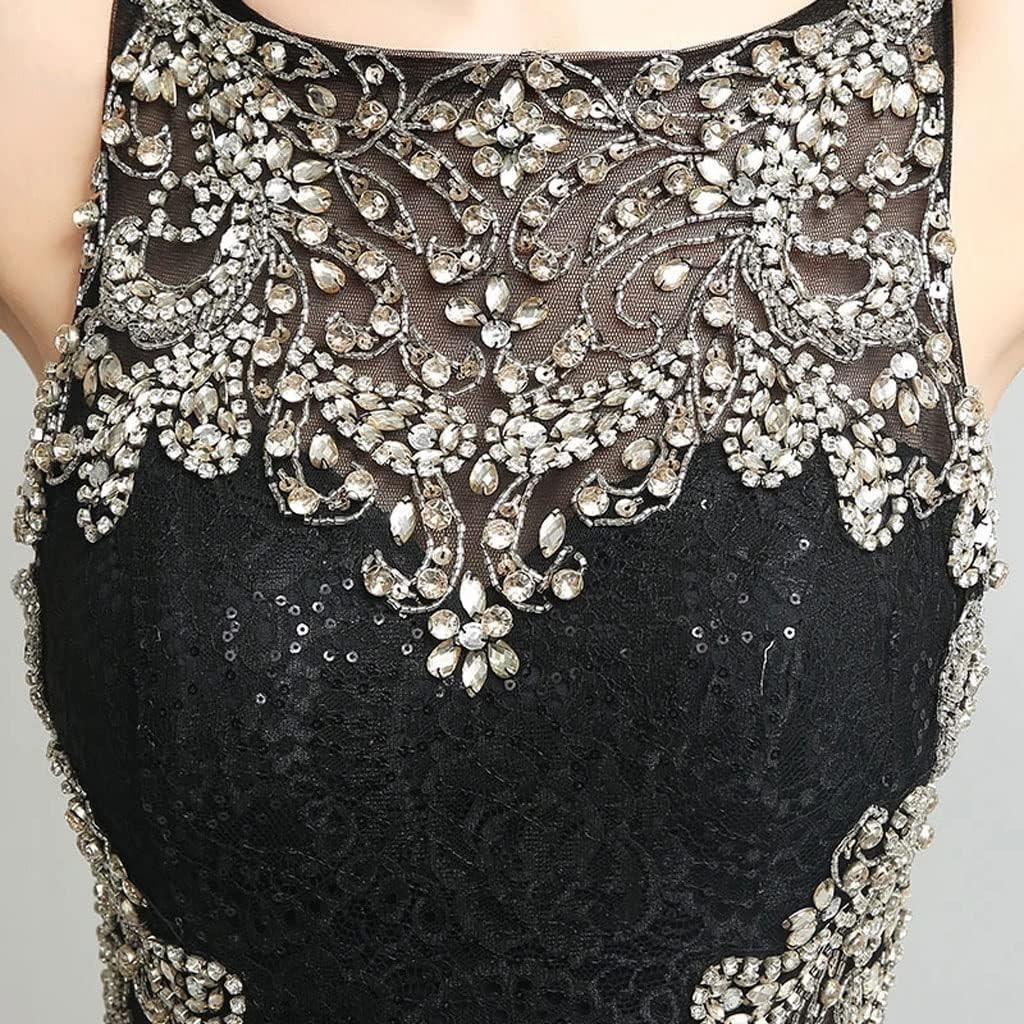 Tulle Mermaid Evening Dress Floor Length Sleeveless Extra Long Beaded Crystal Ball Gown for Women
