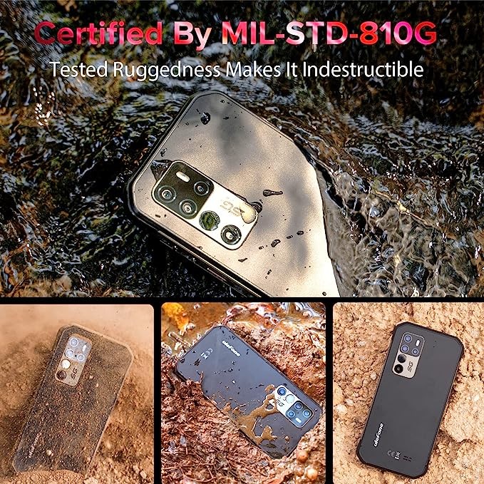 ?8GB RAM & 256GB ROM RUGGED SMARTPHONE?With a fully-integrated Media Tek Dimensity 800 5G chipset, Ulefone Armor 11 5G rugged cell phones can achieve high performance, low power consumption and system fluidity. Powered by 8GB RAM and 256GB of UFS 2.1internal storage can definitely meet your storing needs. Armor 11T 5G is capable of multi-tasking, streaming videos, running even the most demanding games with ease.