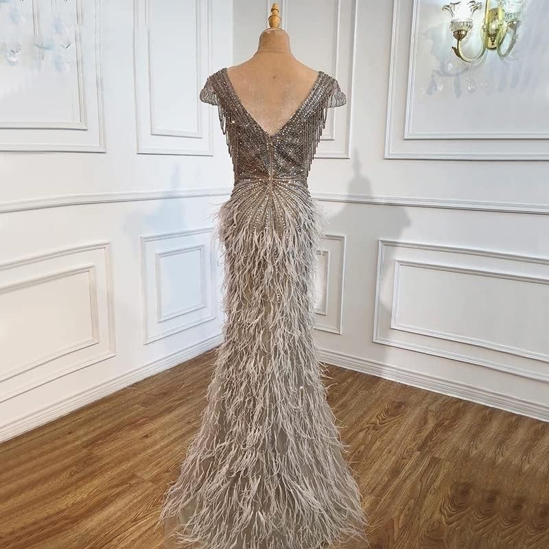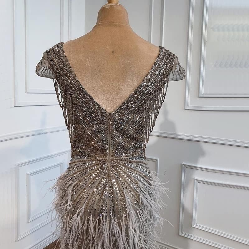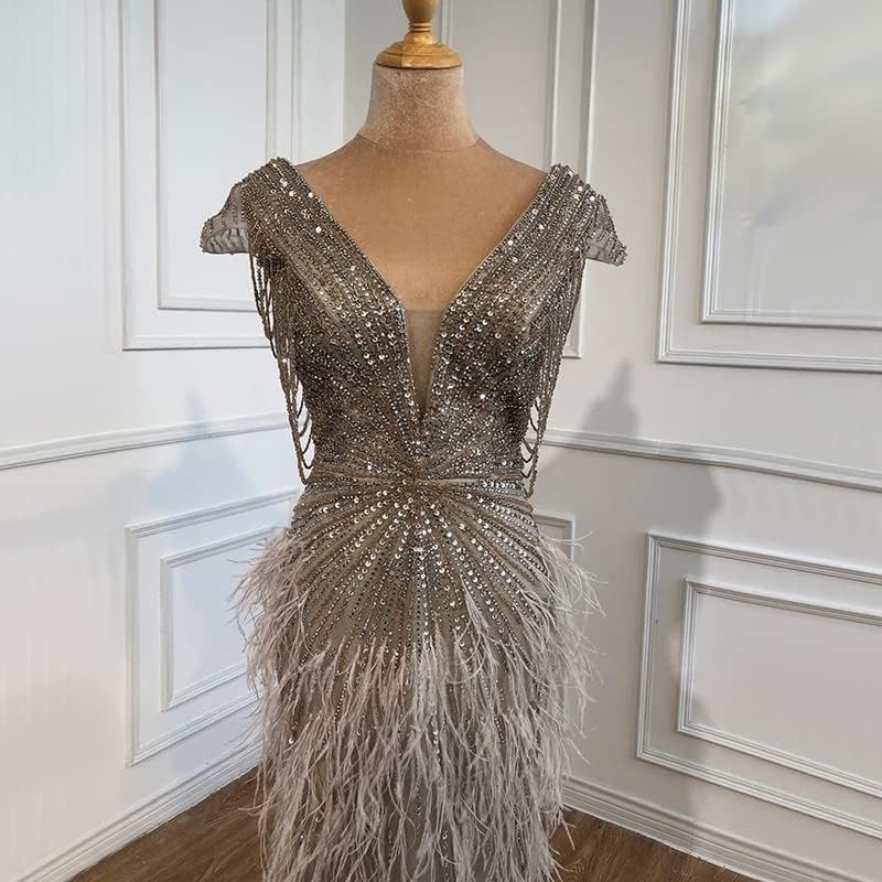 Women's Deep V Evening Dress Shiny Bright Beaded Evening Dress Women's Party Dress Graduation Evening Dress
